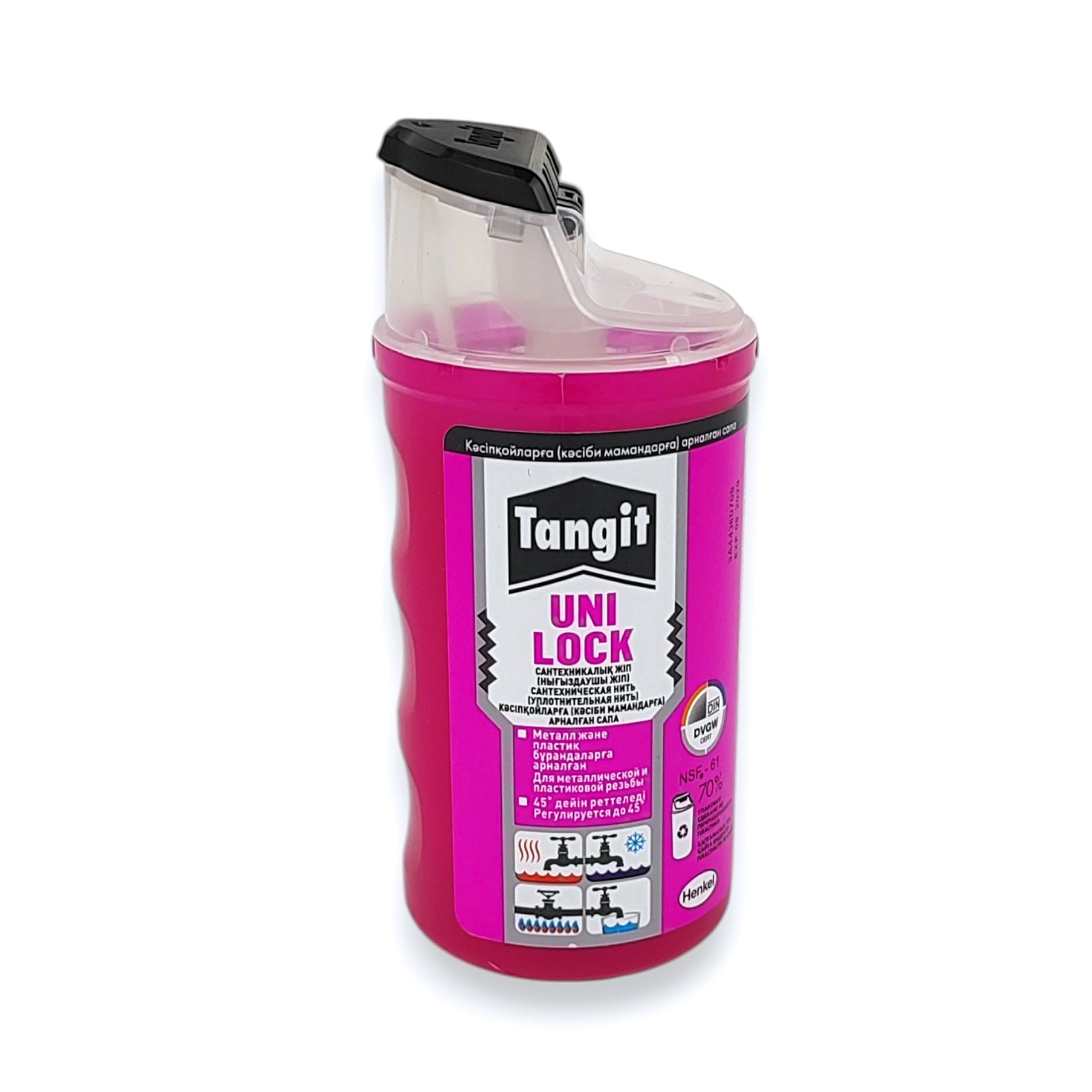 Уплотнитель Tangit Uni-Lock обеспечивает герметичность соединений благодаря мгновенной фиксации и герметизации.Нить снижает трение между резьбовыми частями, что облегчает закручивание. Также она позволяет подрегулировать соединение труб даже после намотки герметика в течение 72 часов, при этом прочность соединения не нарушится.Кроме того, уплотнитель обеспечивает отсутствие утечек даже при давлении 40 бар.Важно учитывать, что при использовании нити на резьбе без насечек (засечек) возможно появление течи, так как нить не фиксируется и может сползать. В таком случае рекомендуется сделать насечки на резьбе, например, газовым ключом.
