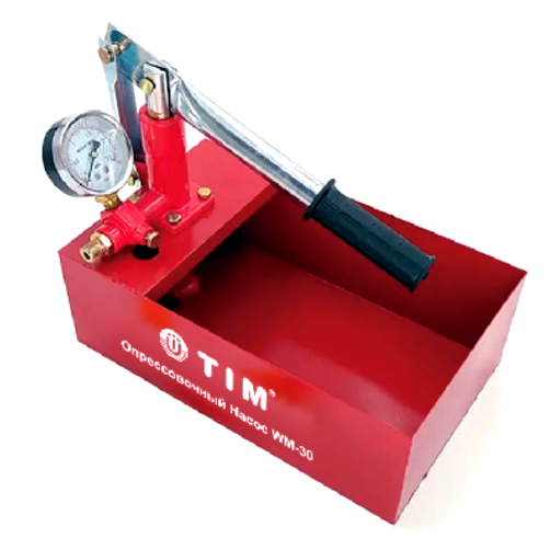 Ручной опрессовочный насос WM-30 5 литров предназначен для точной и быстрой проверки давления, а также герметичности трубопроводных систем и резервуаров в водопроводных, отопительных и сантехнических системах, в системах сжатого воздуха, паровых, охладительных и масляных установках, для котельных и при строительстве напорных резервуаров, идеален для заполнения солнечных батарей. Постоянство давления обеспечивается за счет системы двойных клапанов с нержавеющей шаровой головкой. Особо прочный шарнир рычага с длинной рукояткой обеспечивает точную передачу усилий на поршень при наименьшем износе. . Для дополнительного снижения веса емкость выполнена из упрочненного пластика, устойчивая к воздействиям окружающей среды и холоду. Металлический фильтр для защиты от загрязнения при обратном ходе. Шкала манометра с 2-мя измерительными системами.