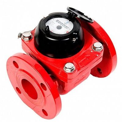 Счетчики воды турбинные состоят из чугунного корпуса с фланцевыми соединениями и взаимозаменяемогоизмерительного механизма (измерительная вставка с турбиной, крышка корпуса, индикаторное устройство смагнитной муфтой и счетным механизмом, смонтированные вместе).Принцип работы счетчика заключается в измерении числа оборотов турбины, вращающейся под действиемпротекающей воды. Поток воды попадает в корпус счетчика и далее, через струевыпрямитель, в измерительныймеханизм, где в твердых опорах с низким коэффициентом трения в вертикальном положении (поперек потока)вращается турбина. Вода, пройдя через измерительный механизм, поступает в выходной патрубок. Скоростьвращения турбины пропорциональна расходу воды.Технические характеристики:Диаметр условного прохода Ду, мм. ———————-5050Расход воды Qmin, м3/час: Класс В ————0,45Класс А ———————-1,2Расход воды Qn, м3/час ————15,0Расход воды Qmax, м3/час —————30,0Емкость индикаторн