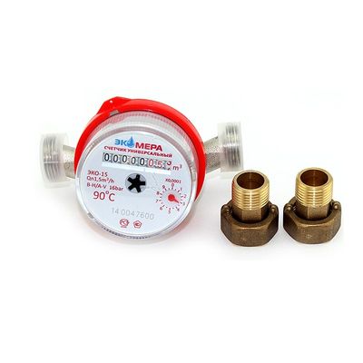 Принцип работы счетчика состоит в измерении числа оборотов крыльчатки, вращающейся поддействием потока протекающей воды.В момент совершения полного оборота счетного механизма геркон подает электрический импульс, который считывается внешним устройством и подается на сигнальный пульт.Диаметр условного прохода Ду, мм: 20Расход воды Qmin, м3/час: Класс В: 0,05Класс А: 0,1Расход воды Qn, м3/час: 2,5Расход воды Qmax, м3/час: 5,0Емкость индикаторного устройства,м3: 99999Диапазон рабочих температур для учета воды: 5 до 90°СМаксимальное рабочее давление воды не более, МПа: 1,6Порог чувствительности, м3/ч: не более 0,5QminМонтажная длина, мм: 130Монтажная длина с американками, мм: 210